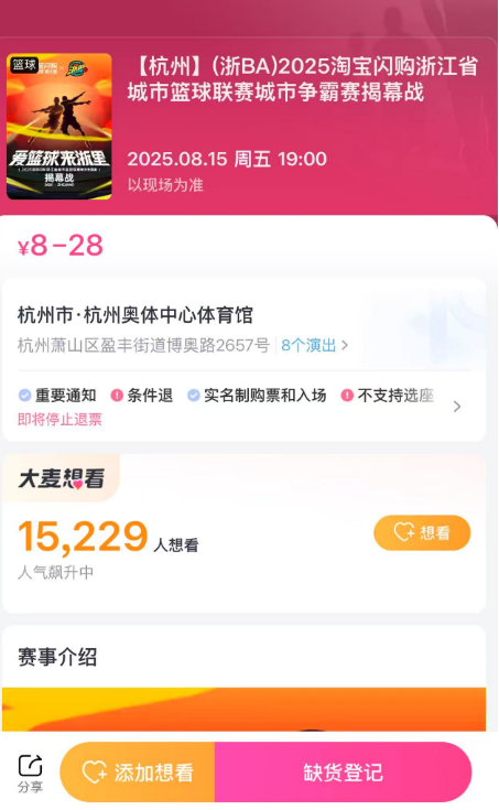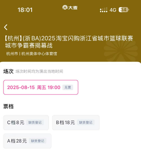 据了解,本场比赛共设置3档票价,分别为8元、18元、28元。今天没抢到的朋友别着急,二开时间是8月14日中午12:00,还有机会!
